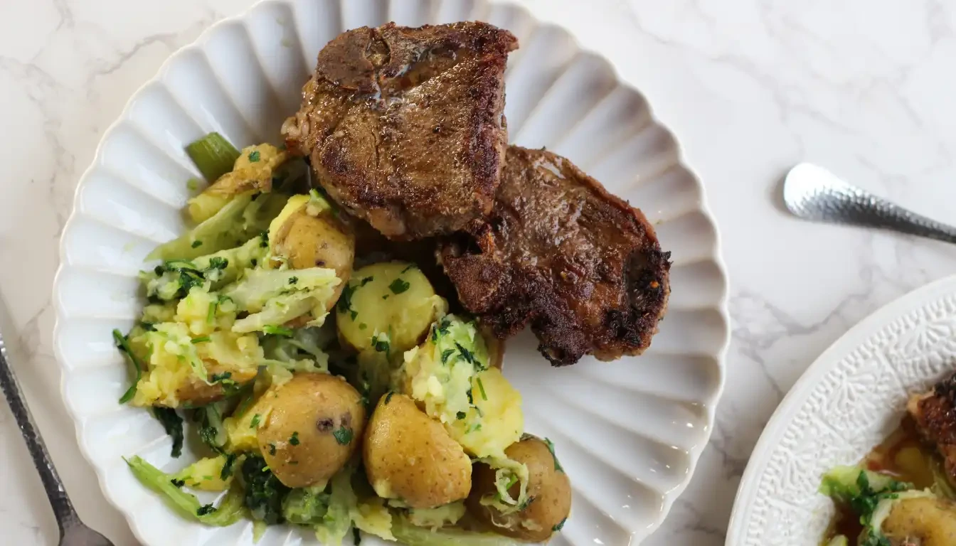 Pan-seared with onions, a little paprika, and that irresistible crisp you can hear.